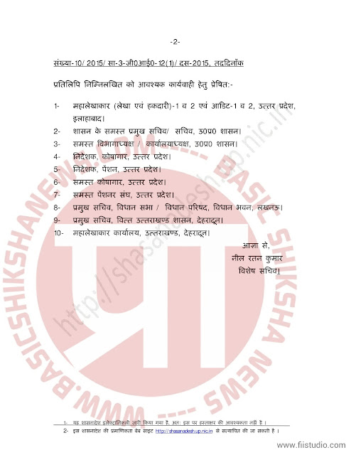उत्तर प्रदेश शासन व (सामान्य) अनुभाग-3 संख्या-10/2015/सा-3-जी0आई0-12/दस-2015-301/2000 ट0सी0