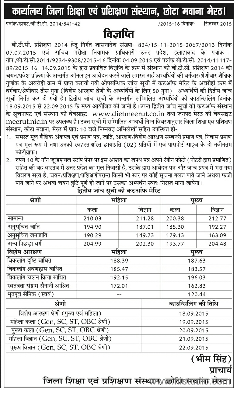 बीटीसी 2014 के लिए विभिन्न ज़िलों की दूसरी कटऑफ जारी : लगातार अपडेट यहीं क्लिक कर देखें |