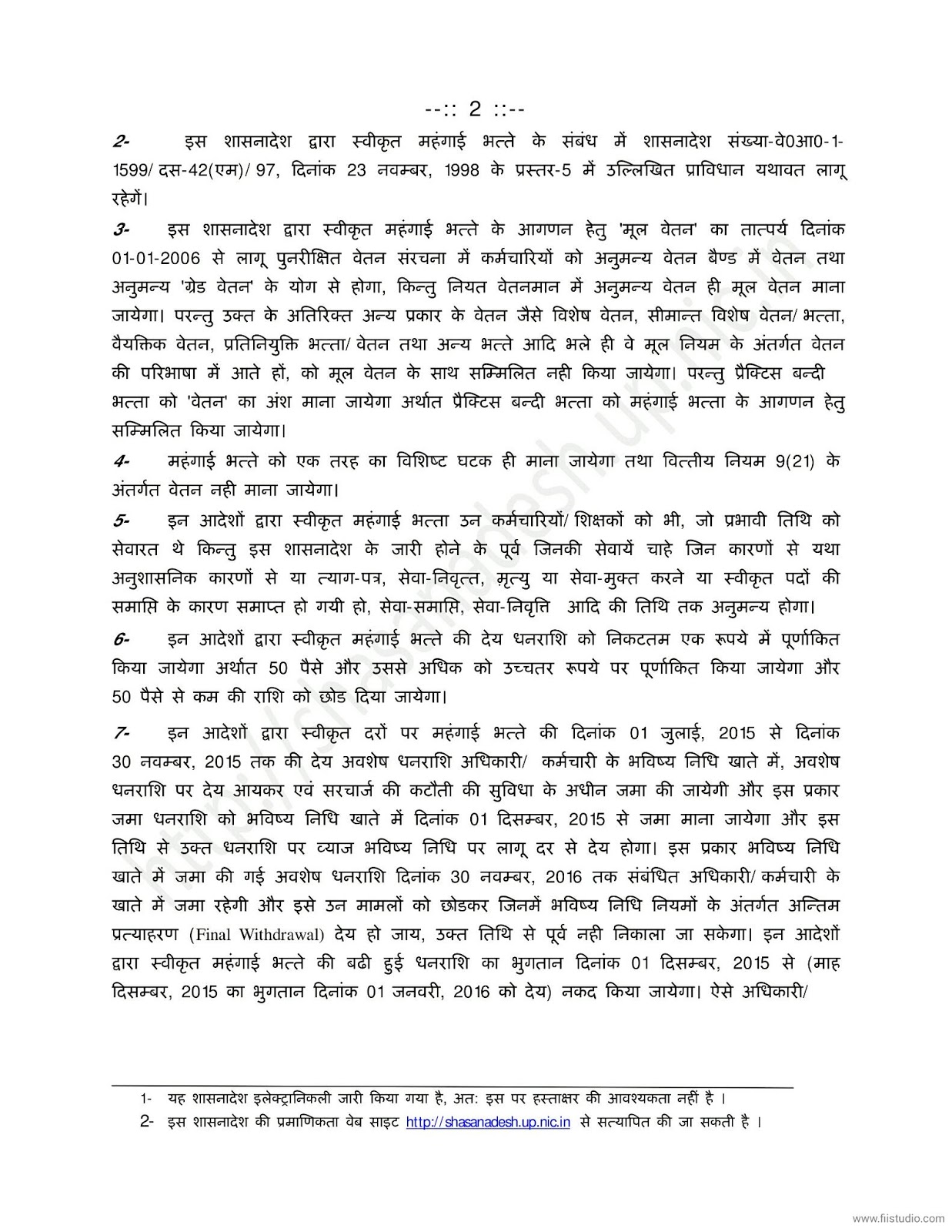 2. 📌 राज्य कर्मचारियों और सहायता प्राप्त शिक्षण एवं प्राविधिक शिक्षण संस्थाओं, शहरी स्थानीय निकायों तथा कार्य प्रभारित कर्मचारियों को महंगाई भत्ते का दिनांक 01-07-2015 से बढी हुई दर पर भुगतान।