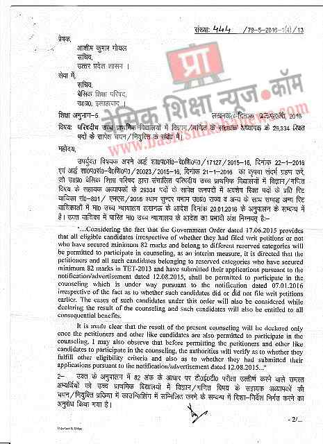 परिषदीय उच्च प्राथमिक विद्यालयों में विज्ञान/गणित के सहायक अध्यापक के 29334 रिक्त पदों के सापेक्ष चयन/नियुक्ति के सम्बन्ध में आदेश जारी ।