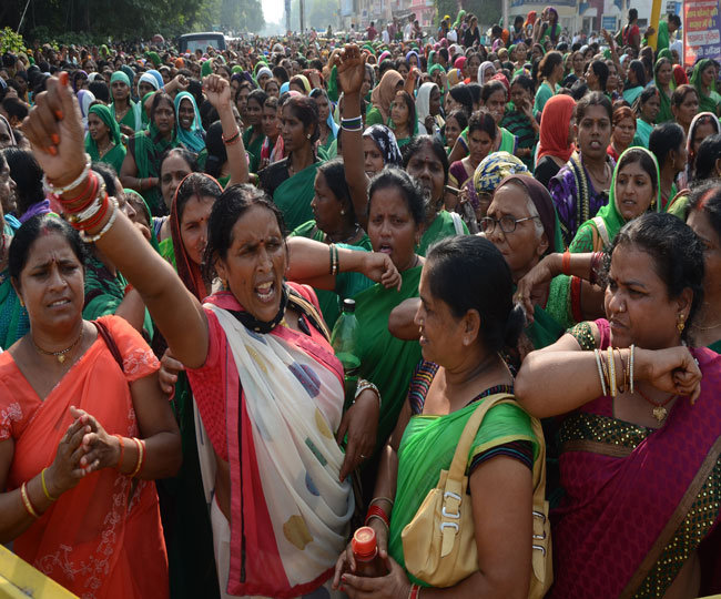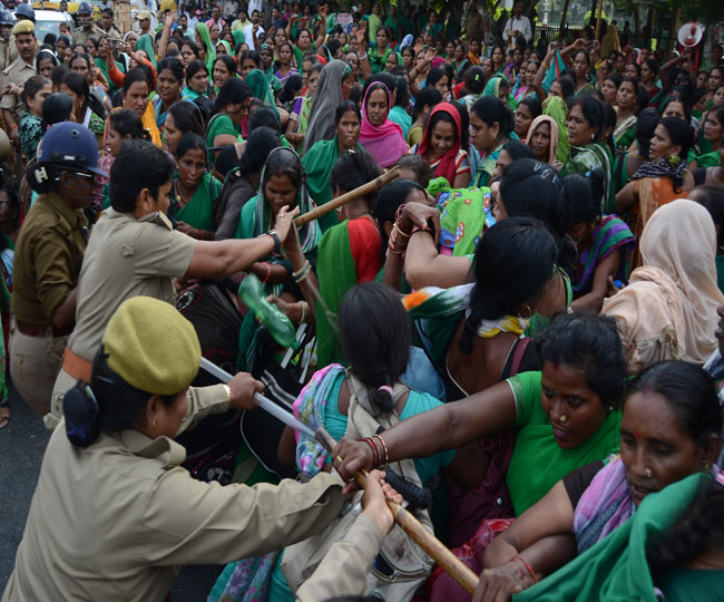 लखनऊ (जेएनएन)। प्रदेश भर से हजारों की संख्या में आई महिला आंगनबाड़ी कार्यकर्ताओं ने सोमवार सुबह नियमितीकरण समेत 16 सूत्रीय मांगों को लेकर जीपीओ पार्क में प्रदर्शन शुरू कर दिया। महिलाओं ने प्रदेश सरकार विरोधी और शासन के खिलाफ जमकर नारेबाजी की। उन्होंने विधानसभा मार्ग और राजभवन रोड पर जाम लगा दिया। महिलाएं प्रदर्शन के दौरान भाजपा मुख्यालय में घुस गई। उन्होंने सीएम आवास का घेराव के लिए भी कूच किया। पर पुलिस ने लाठी चार्ज कर उन्हें रोक लिया। सुबह से लेकर रात तक अफरातफरी का माहौल रहा।