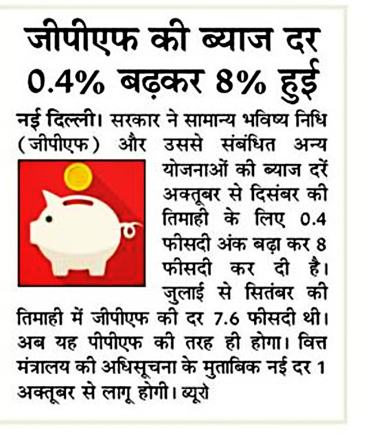 GPF : सरकारी कर्मियों के लिए खुशखबरी, जीपीएफ की ब्याज दर में हु बढ़ोतरी, नई दर 1 अक्टूबर से होगी लागू