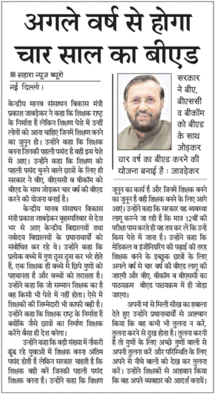 BED, TRAIKING : अगले साल से चार साल का होगा बीएड, 12वीं क्लास पास करके जॉइन कर सकेंगे यह कोर्स।